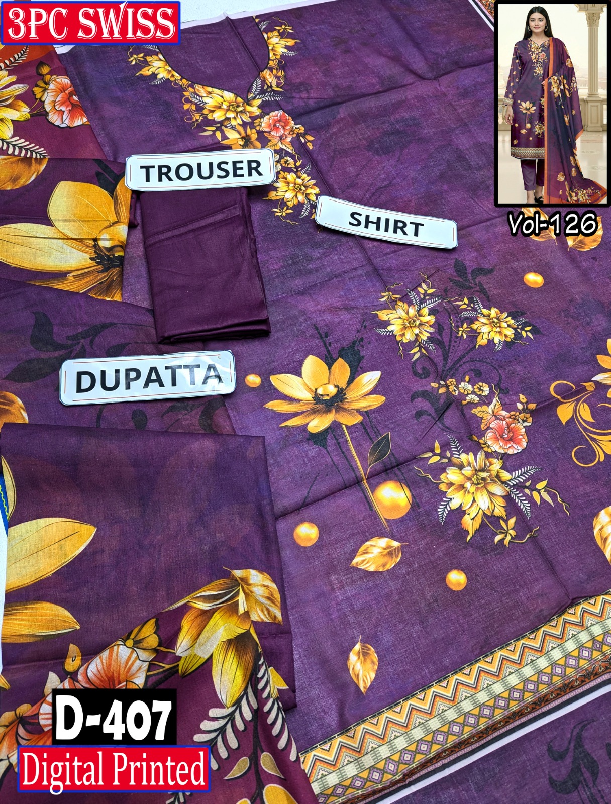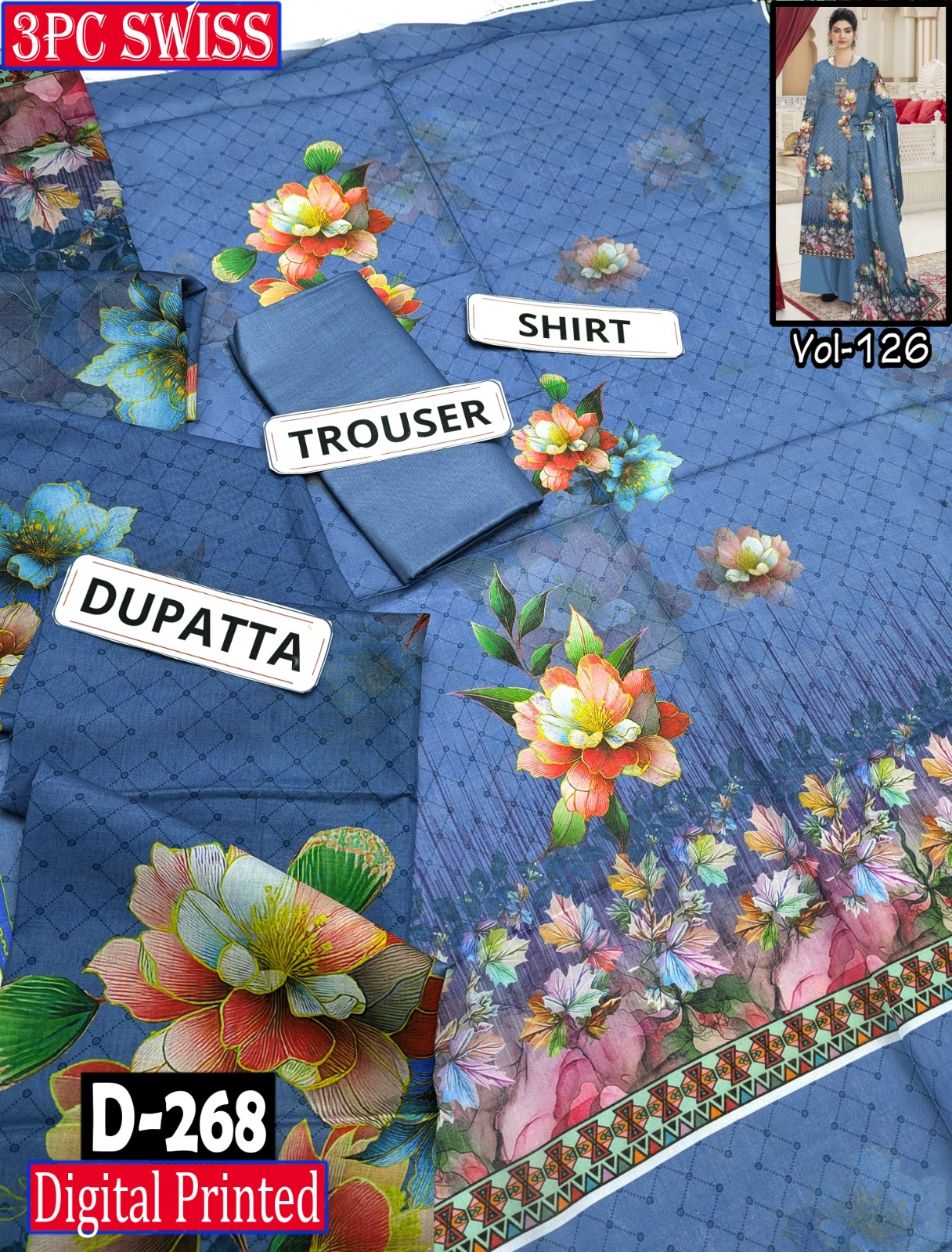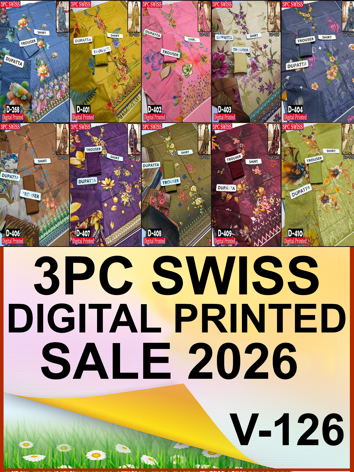 3PC SWISS LAWN DIGITAL PRINTED COLLECTION VOL-126-Set Of 10 Dresses