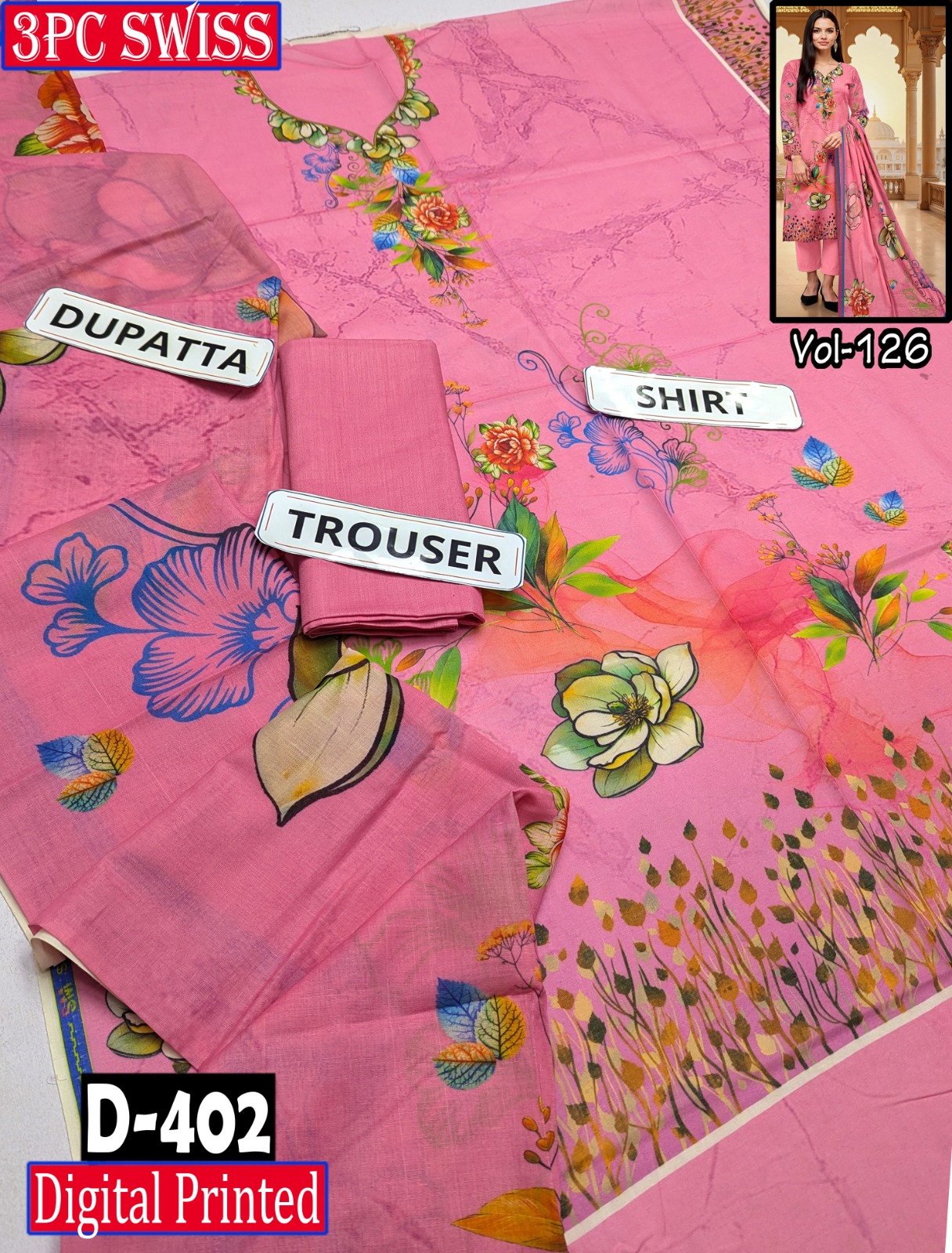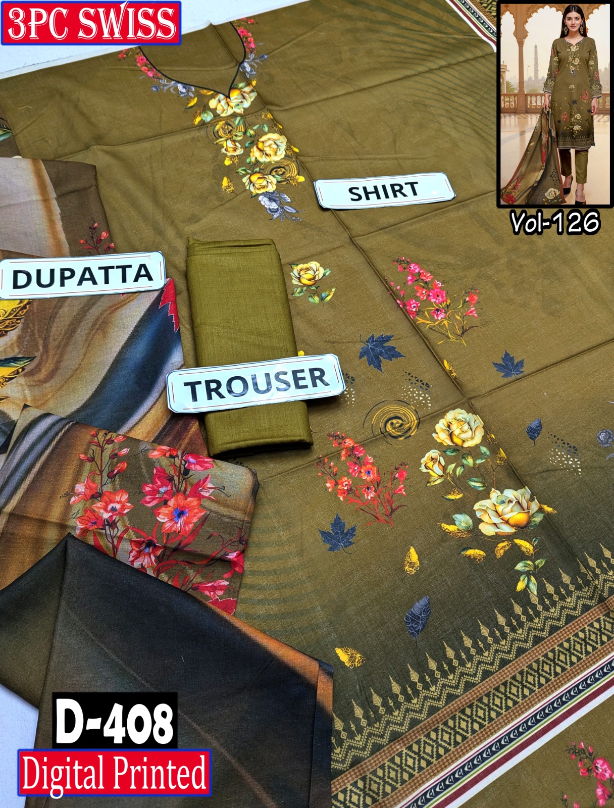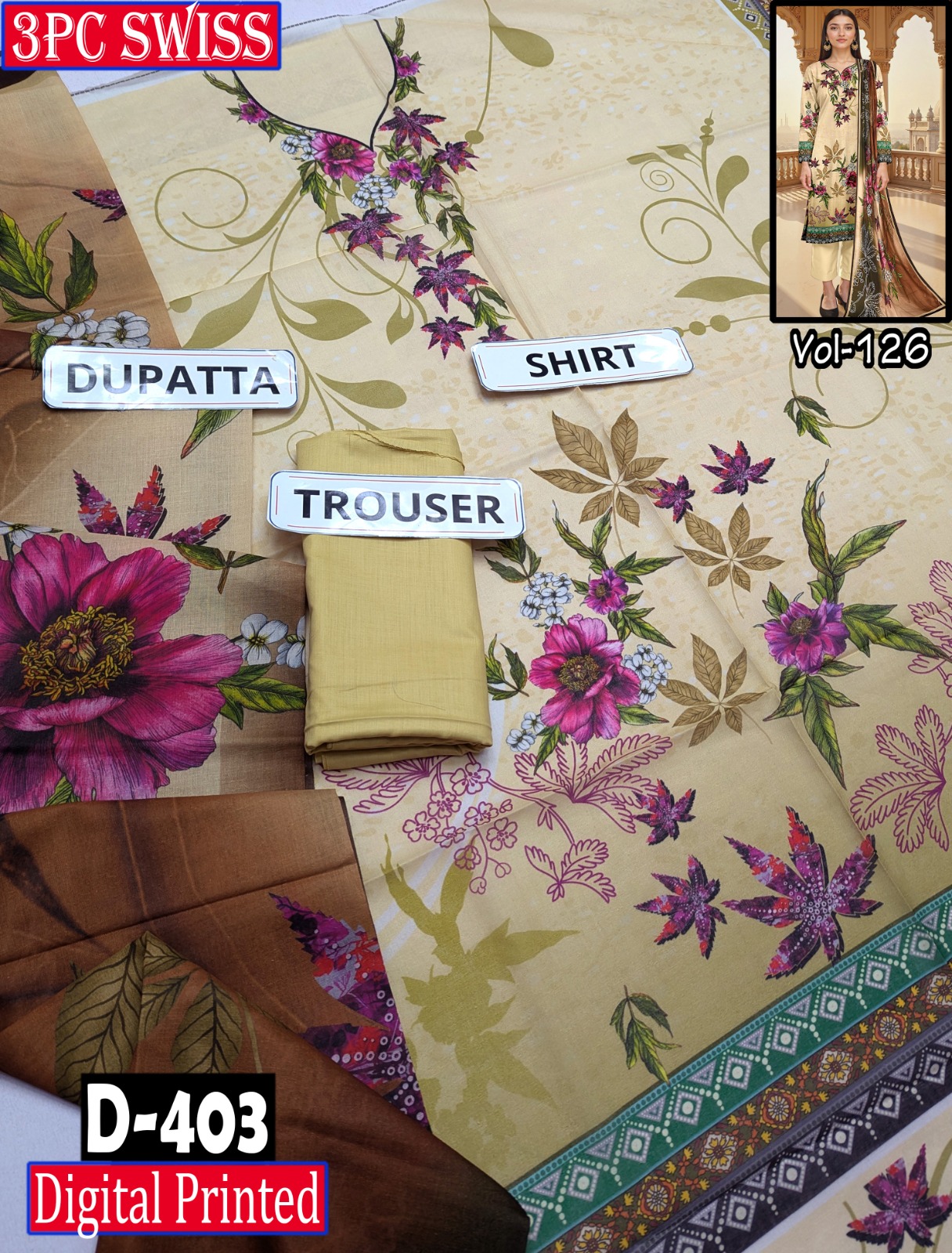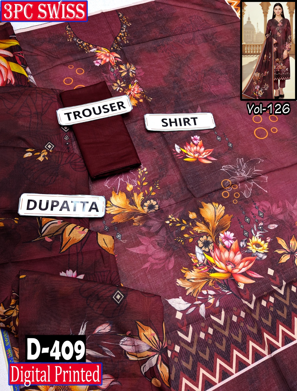 3PC SWISS LAWN DIGITAL PRINTED COLLECTION VOL-126-Set Of 10 Dresses