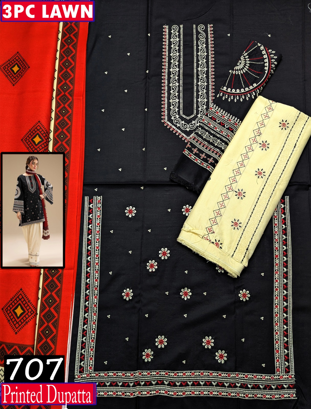 MIX BRANDS 3PC EMBROIDERED LUXURY DESIGNER LAWN VOL-10-D-707