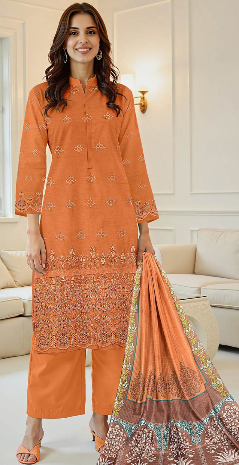The plain trouser offers a refined contrast, while the dupatta provides movement and charm. This suit is ideal for summer events, family gatherings, and festive wear.
