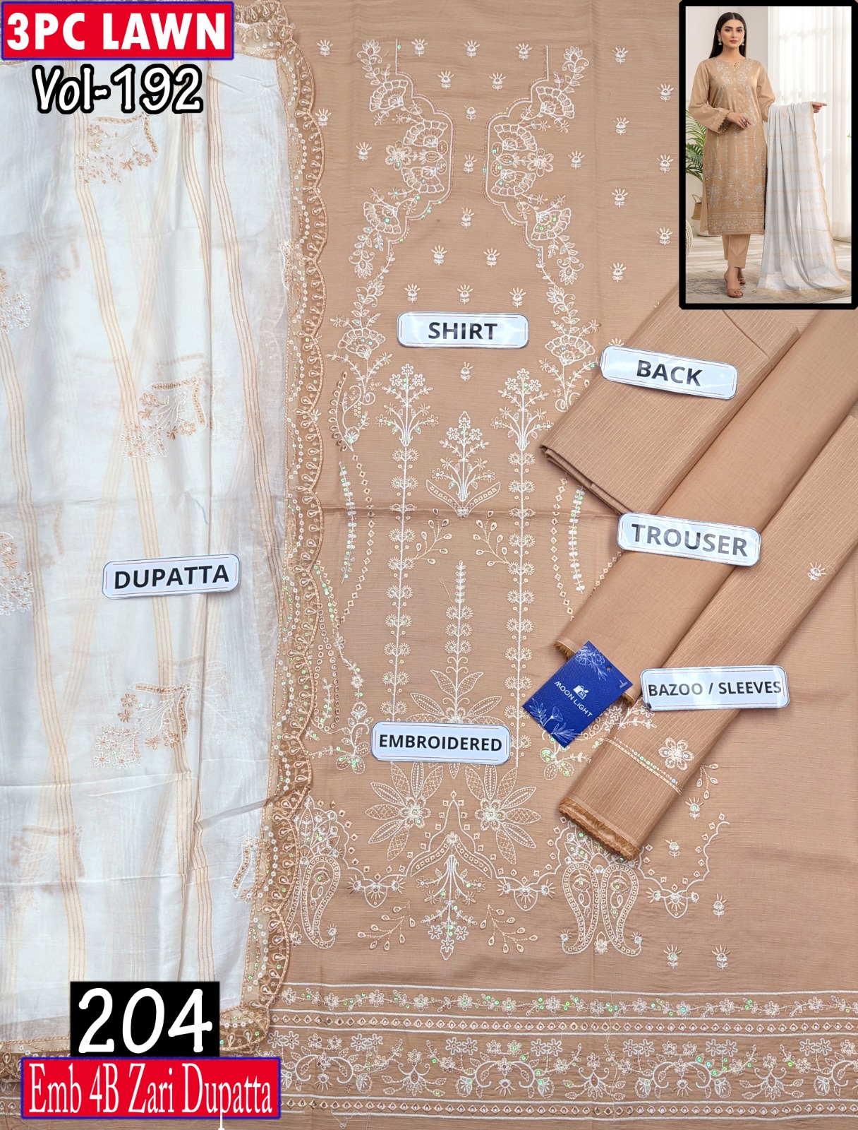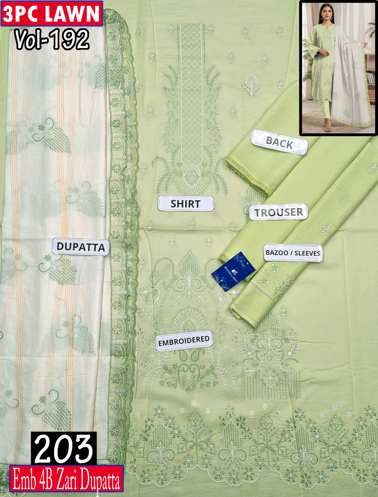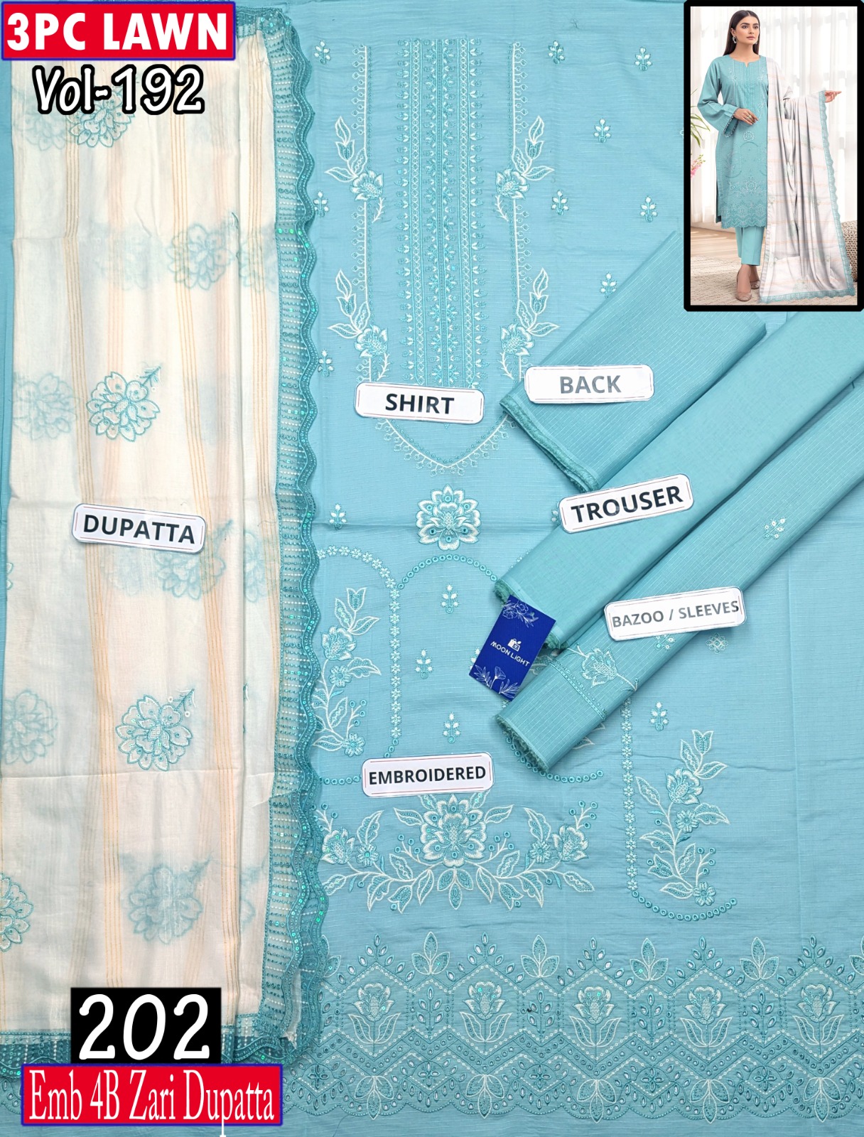 MOONLIGHT 3PC EMBR SEQUIN BANA DORA BOARING 4-BORDER ZARI DUPATTA VOL-192-Set Of 6 Dresses