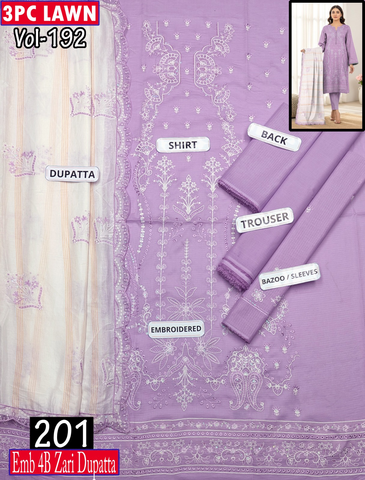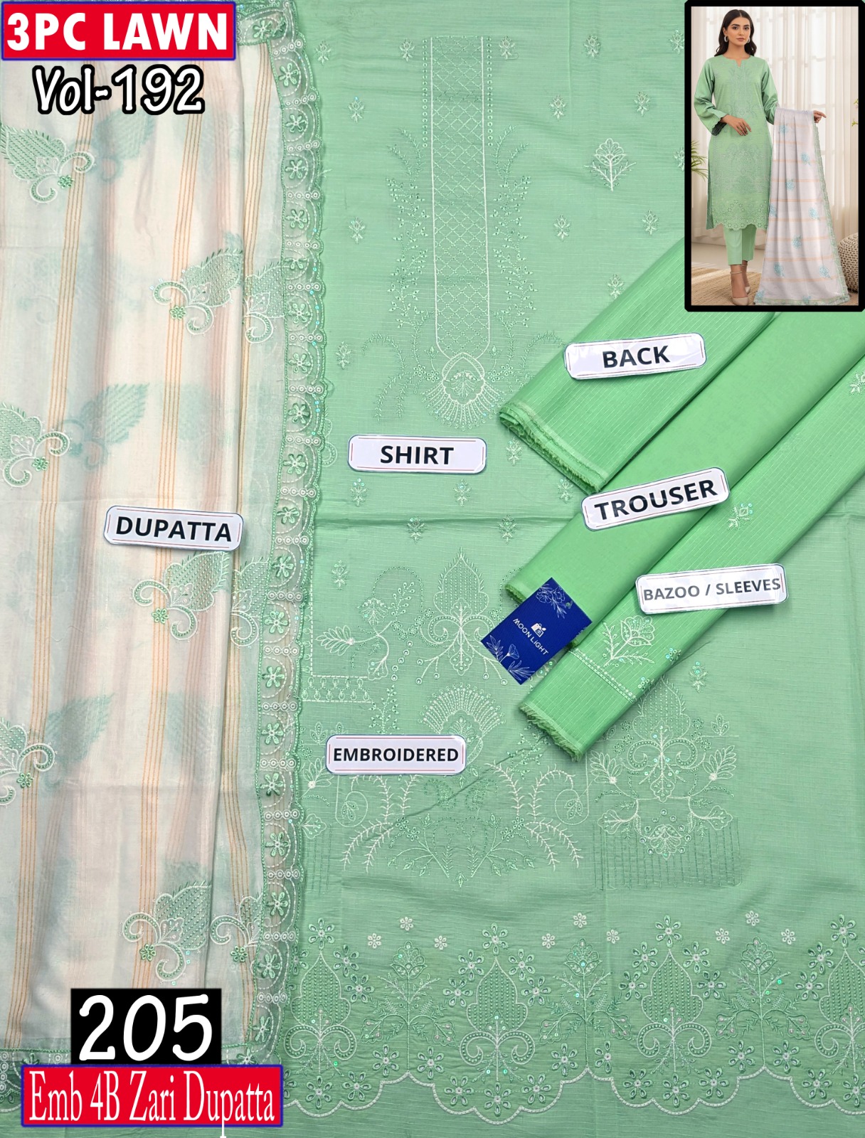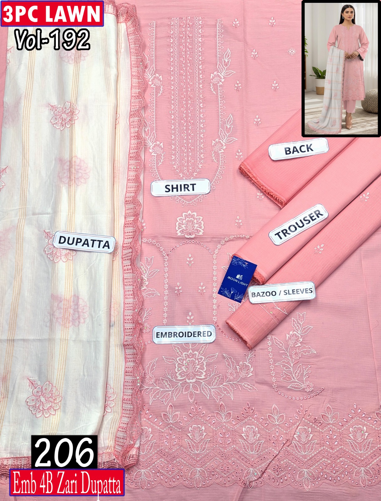 MOONLIGHT 3PC EMBR SEQUIN BANA DORA BOARING 4-BORDER ZARI DUPATTA VOL-192-Set Of 6 Dresses