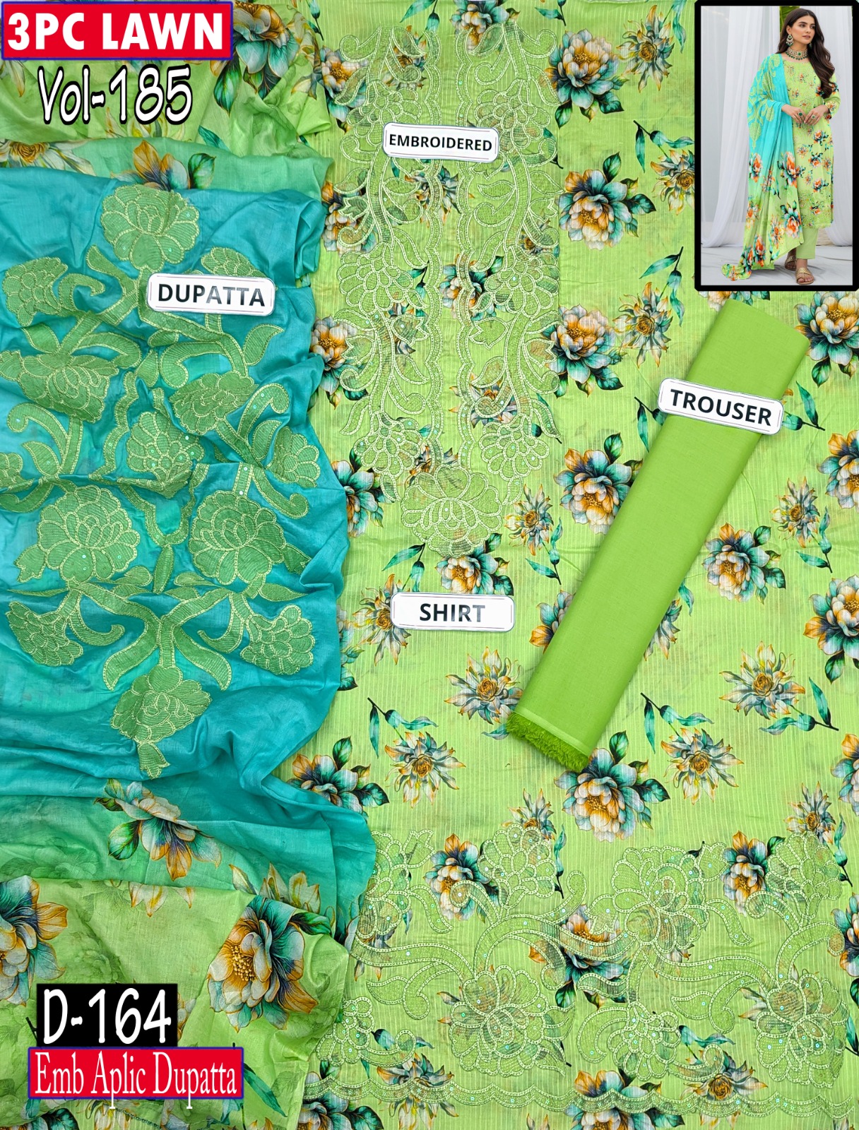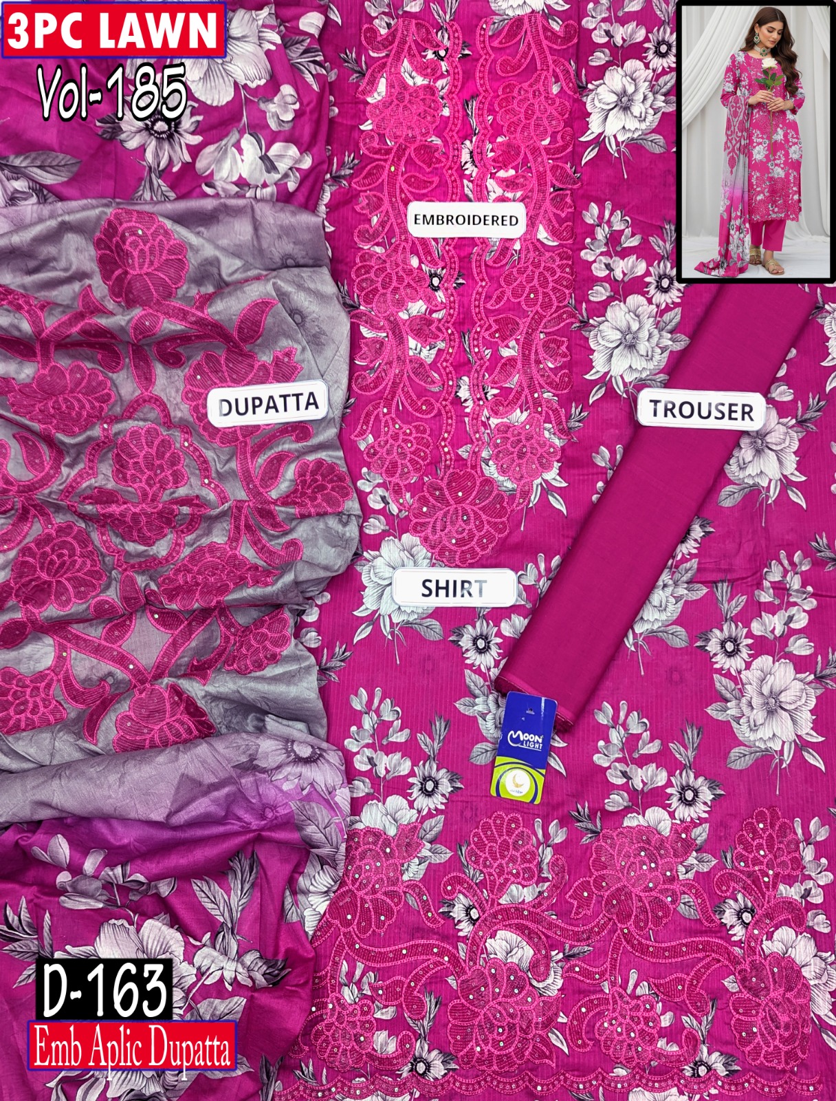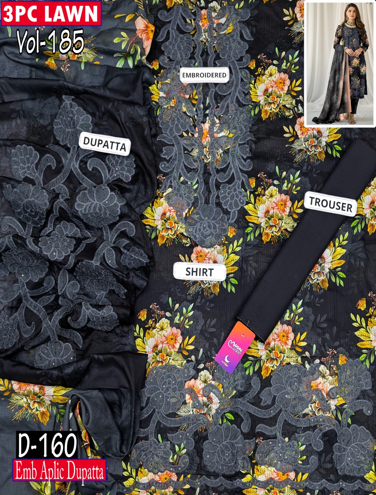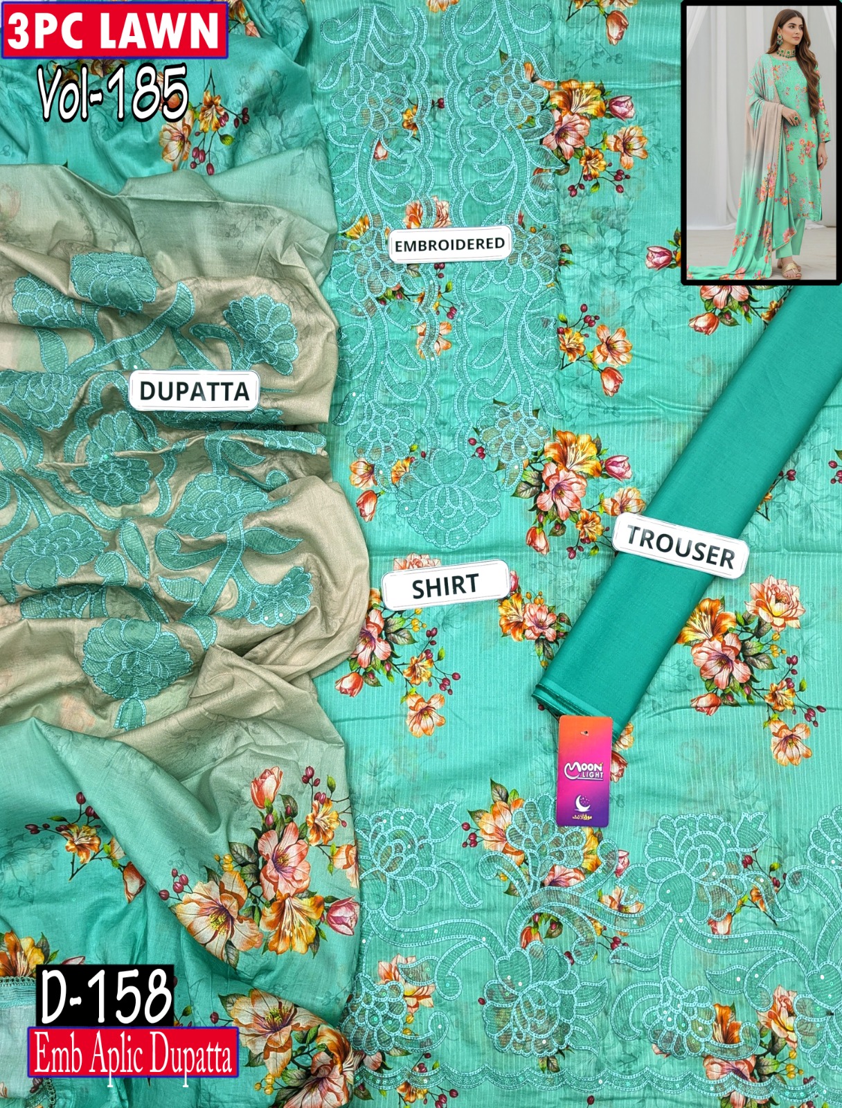 MOONLIGHT 3PC EMBR SEQUIN BANA DORA PRINTED APLIC WORK DESIGNER VOL-185-Set Of 8 Dresses