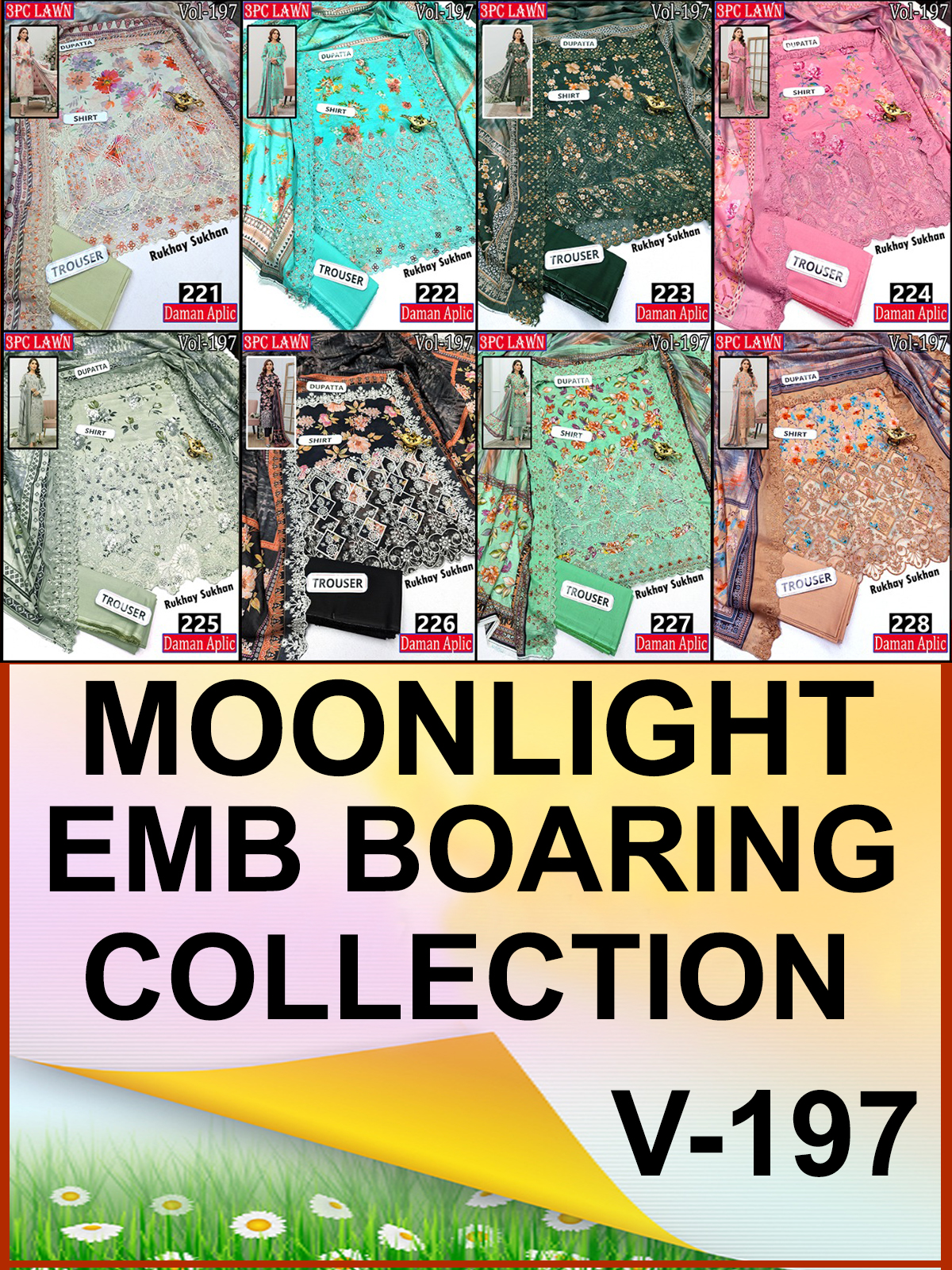 MOONLIGHT 3PC EMBR SEQUIN DIGITAL PRINTED APLIC WORK LAWN DESIGNER VOL-197-Set Of 8 Dresses