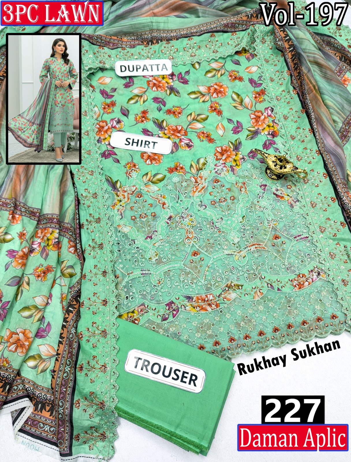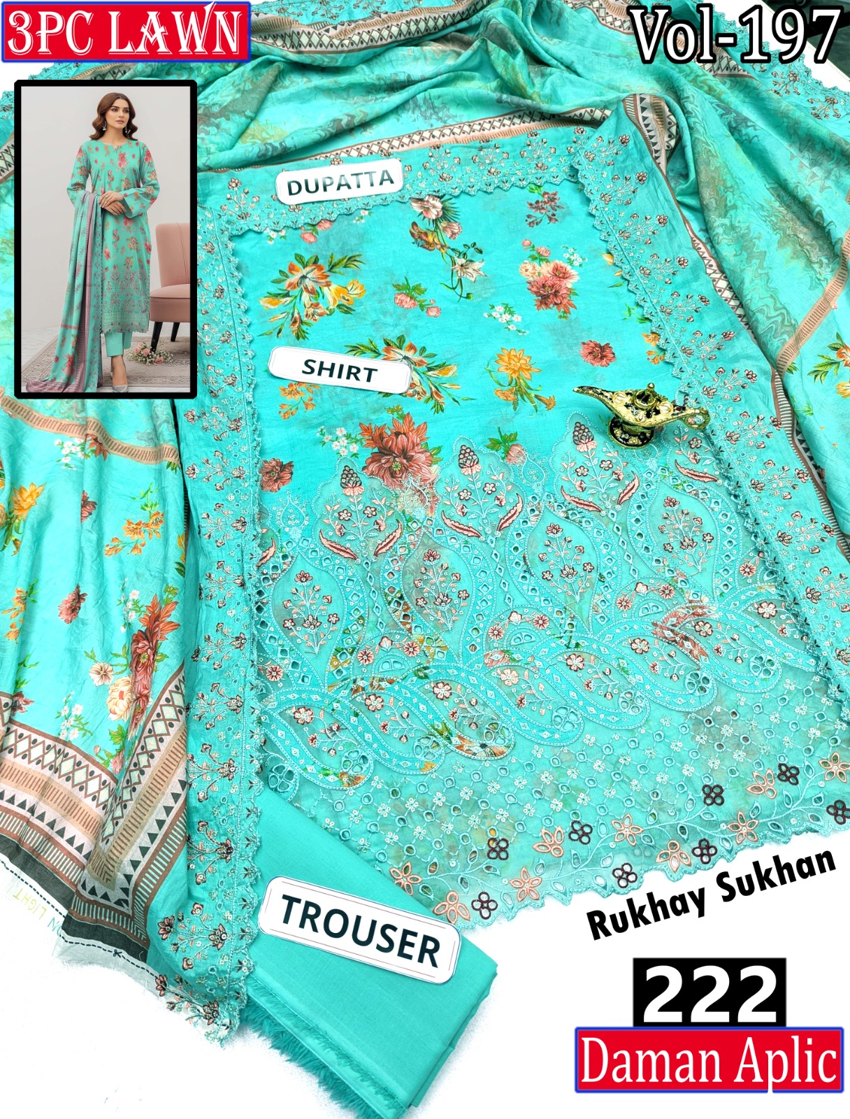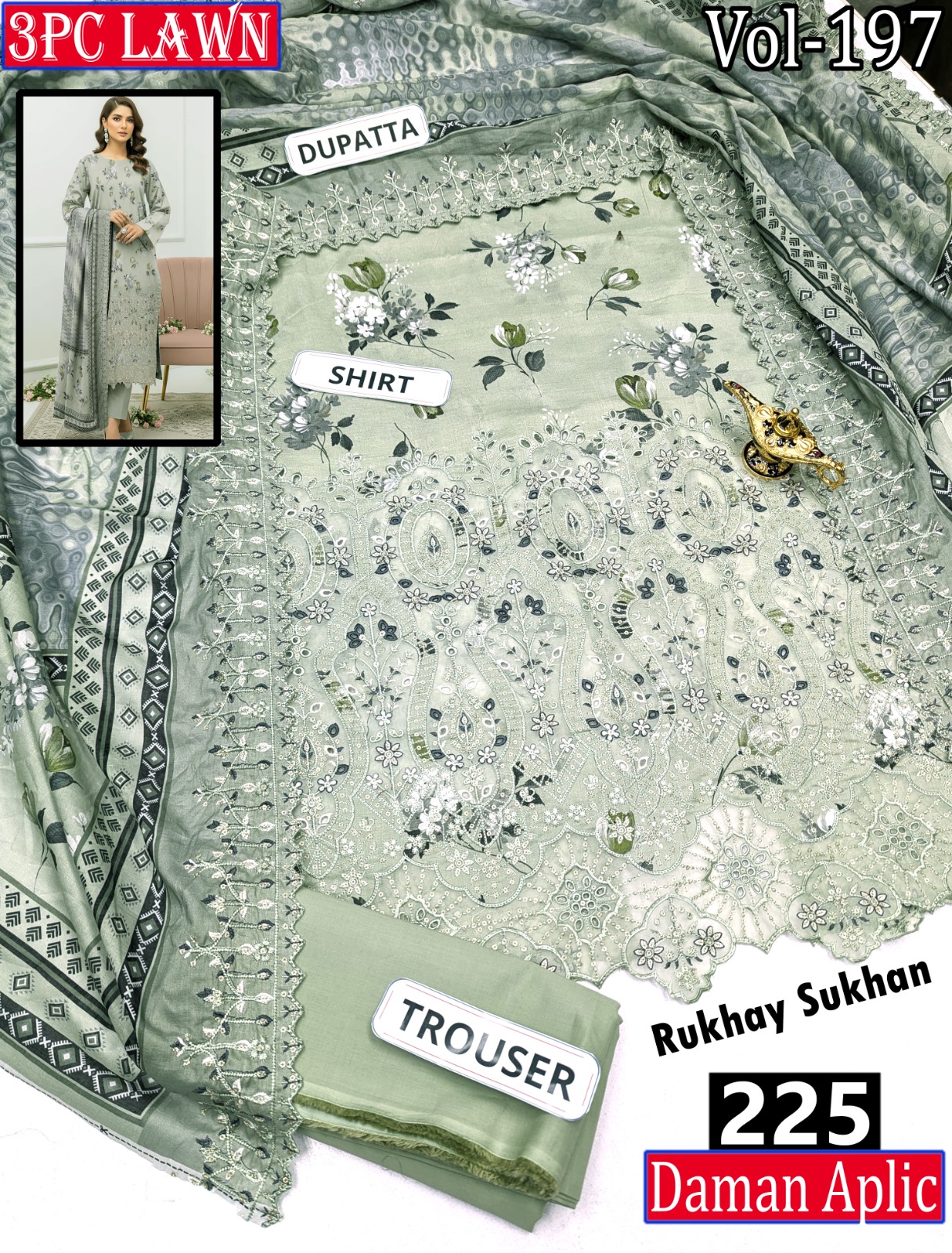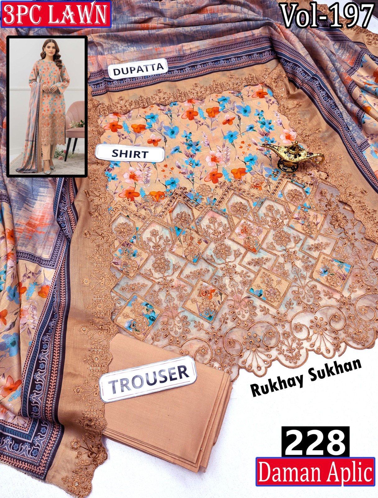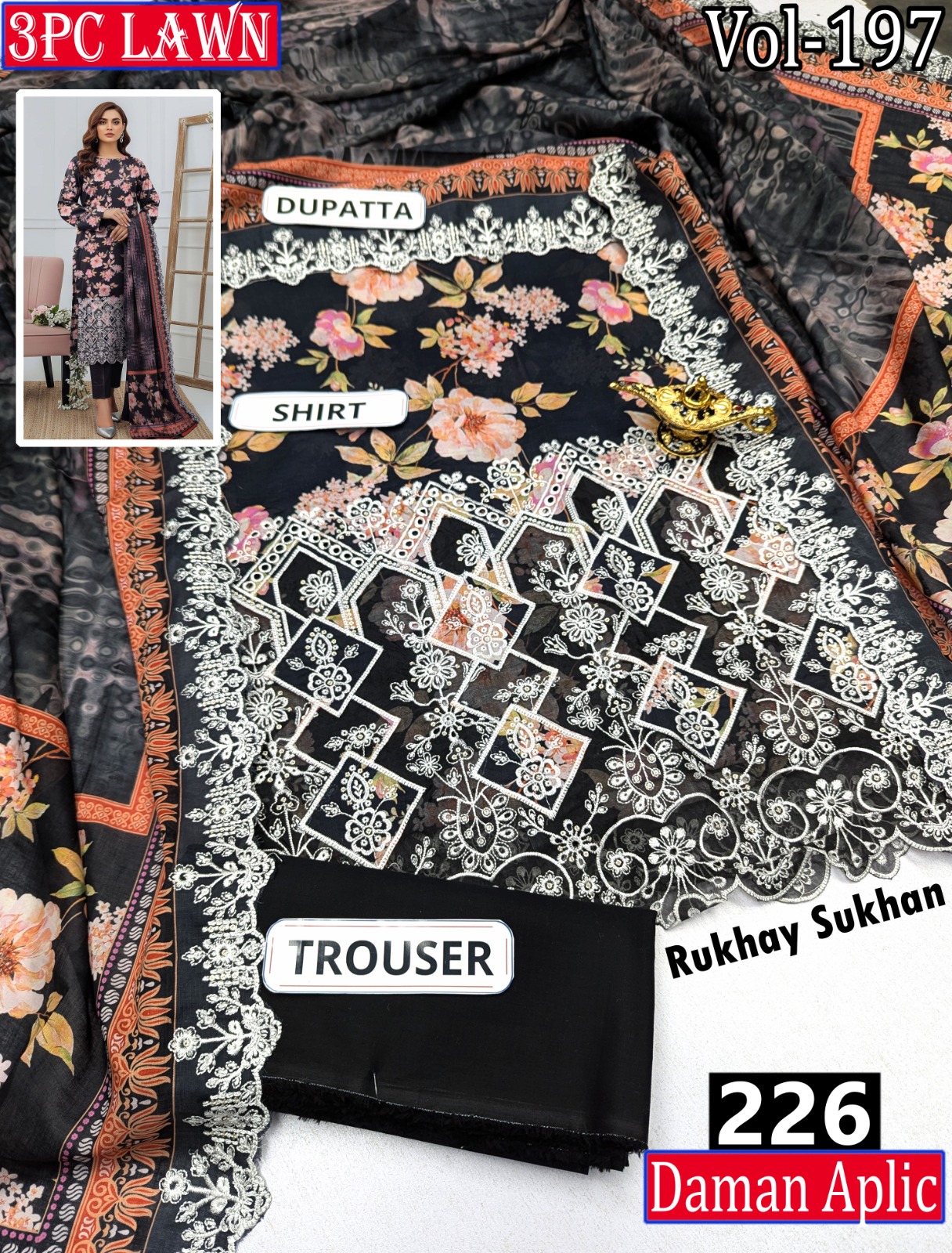 π₯ EMBR SEQUIN APLIC WORK DIGITAL PRINT LAWN BOARING SHIRT 2.85M