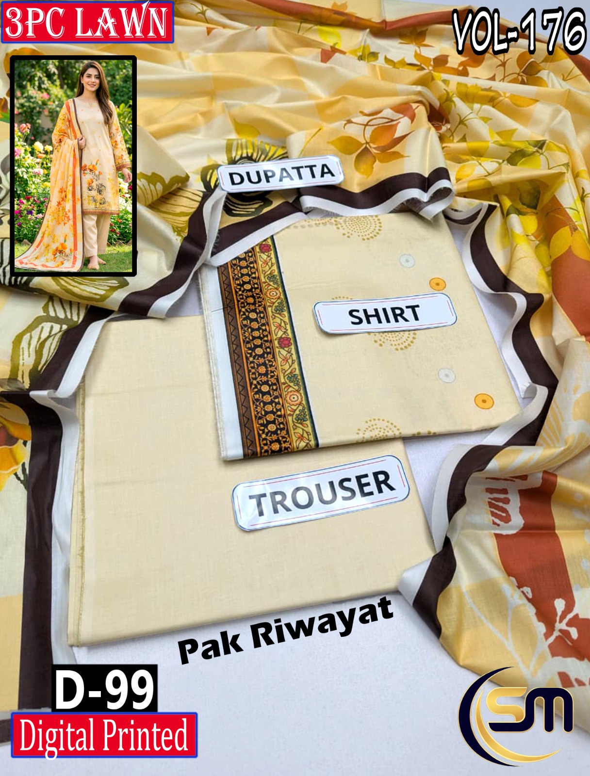 PAK RIWAYAT 3PC DIGITAL PRINTED LAWN COLLECTION VOL-176-D-99