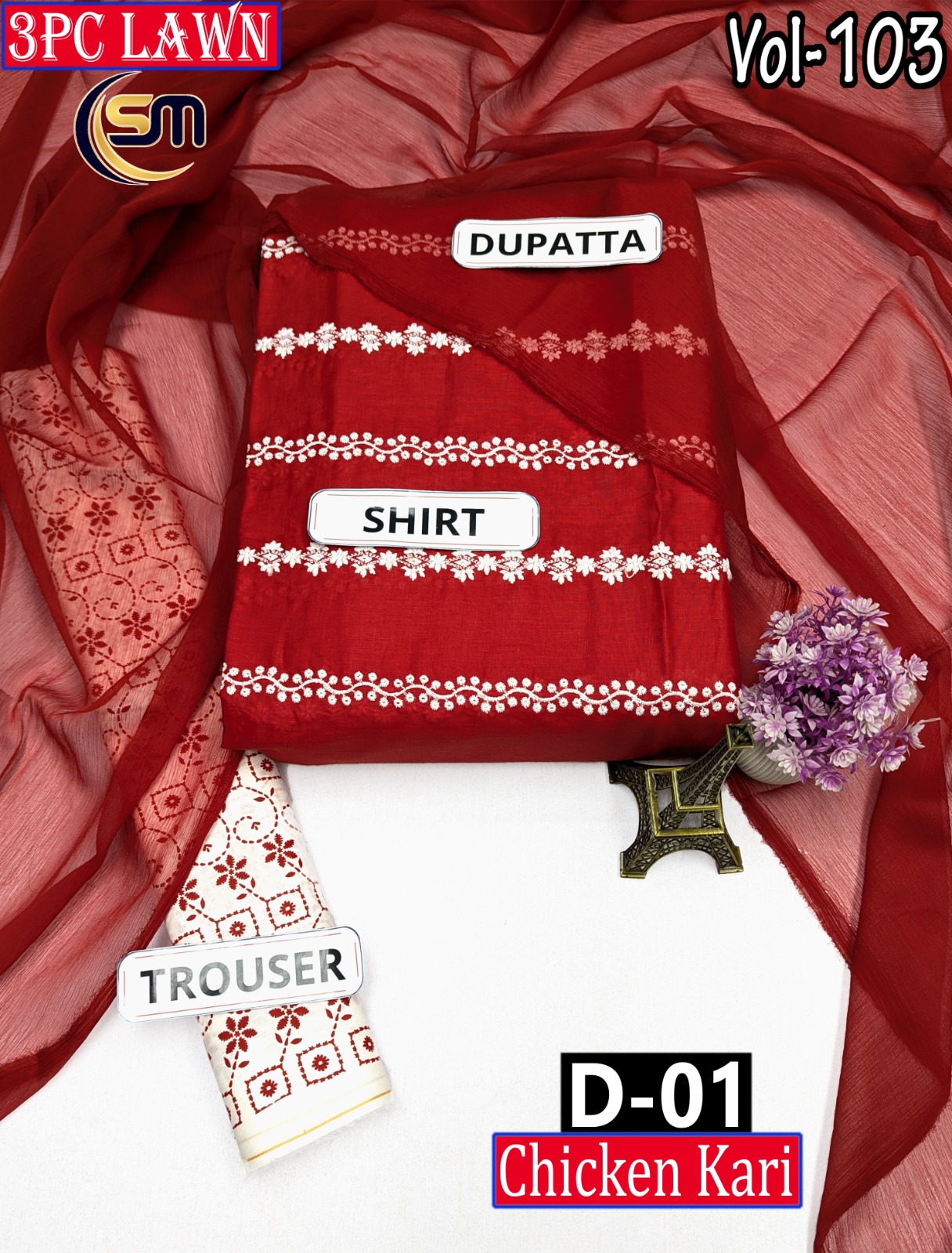 SM 3PC CHICKEN KARI LAWN 90/70 SUMMER COLLECTION VOL-103-D-01