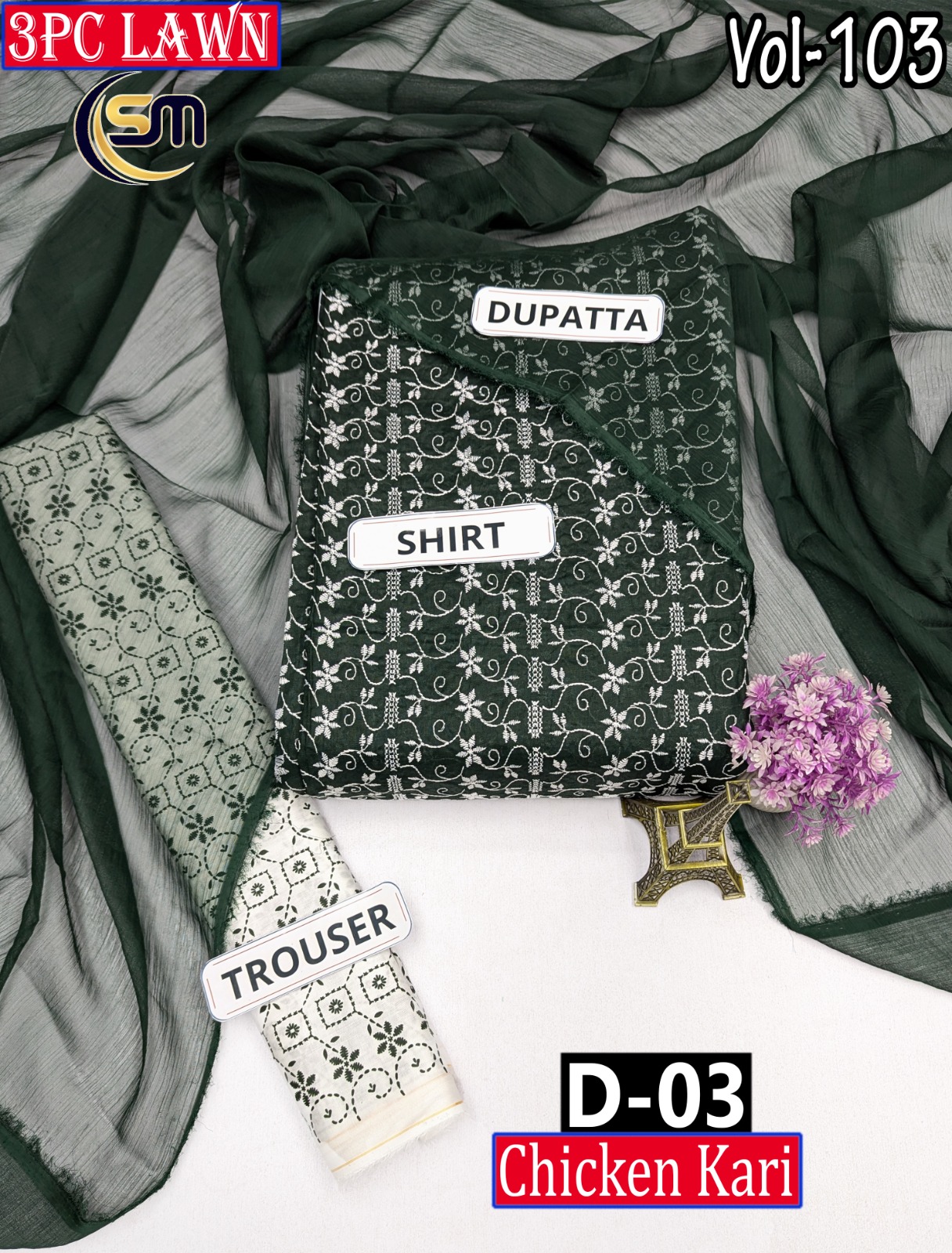 SM 3PC CHICKEN KARI LAWN 90/70 SUMMER COLLECTION VOL-103-D-03